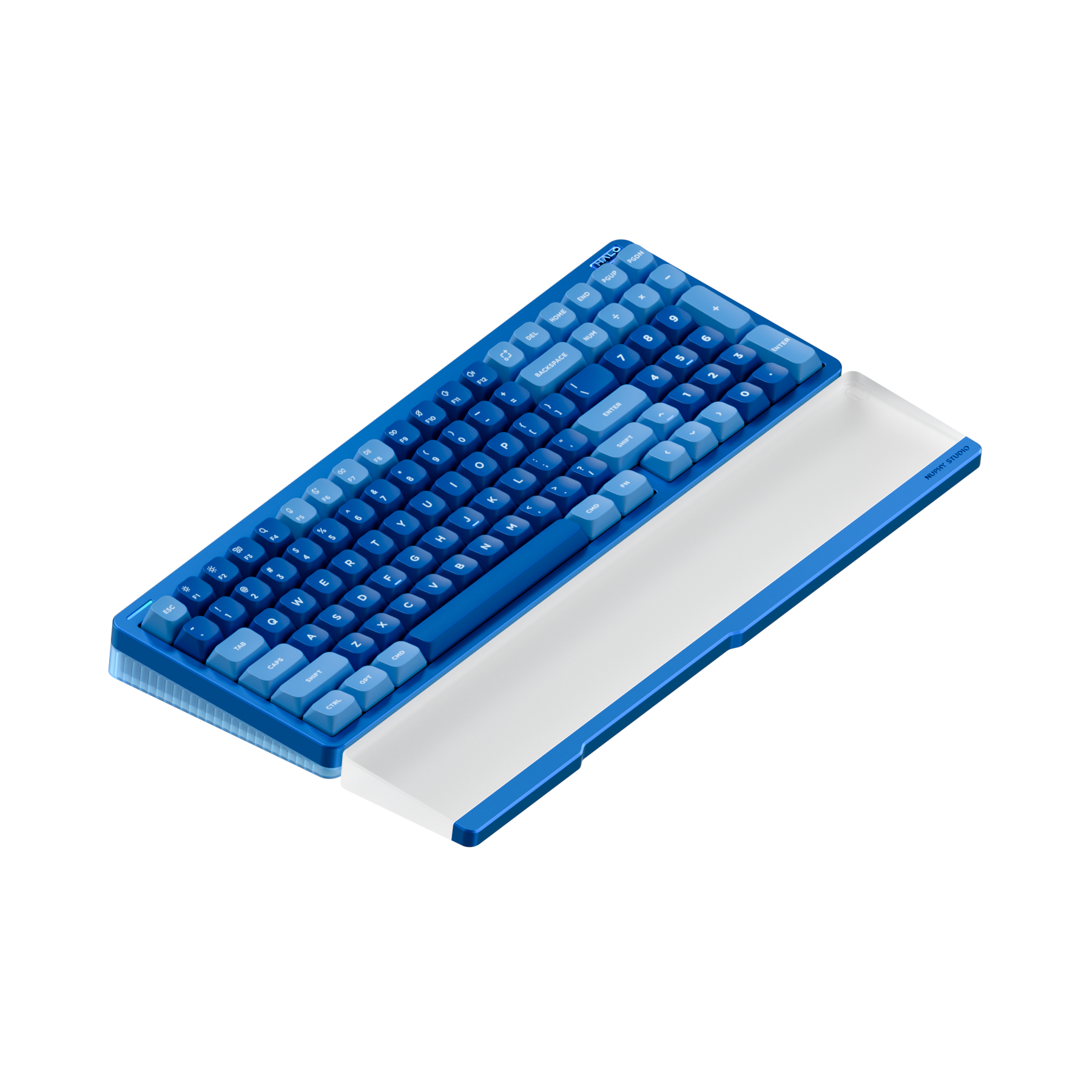 If there ever was a market segment Halo positions itself in, it is being both a device that can handle every task you throw at it, and an absolute gorgeous looker. Its wavy side columns, solid unibody aluminum frame, and its unabashed light maximalism, all serve to enhance this role. In the design of the V2 we have only doubled down on the investment: the completely redesigned semi-transparent bottom case extends the layer-ness of the Ionic side columns into the third dimension, while the Gem-style nameplate LED brings a fun twist to Halo’s impressive lineup of functional lights. When the lights go on, the bottom case ‘merges’ into the Halo light bands to create the most amazing light effects ever seen on a NuPhy keyboard.