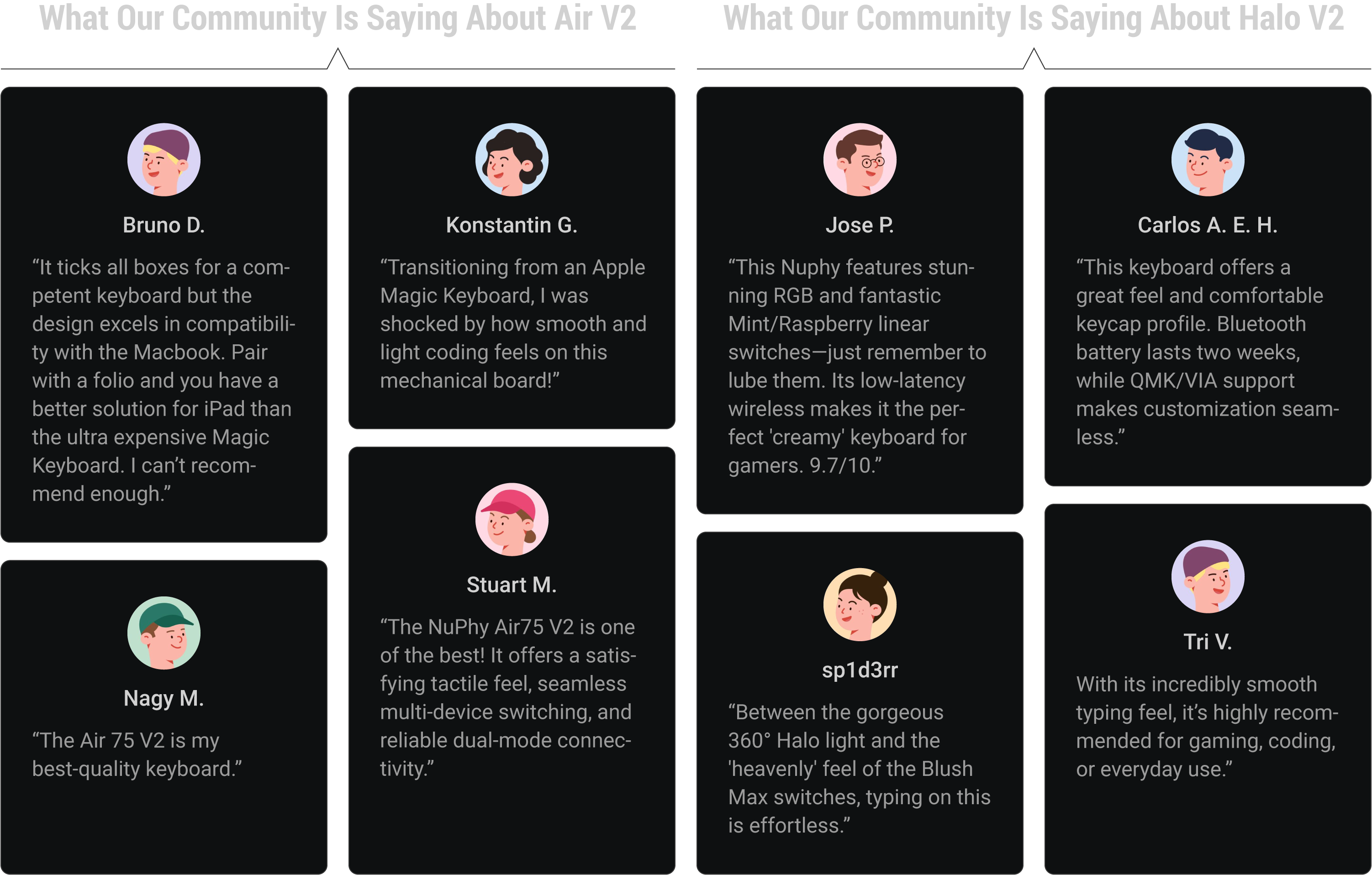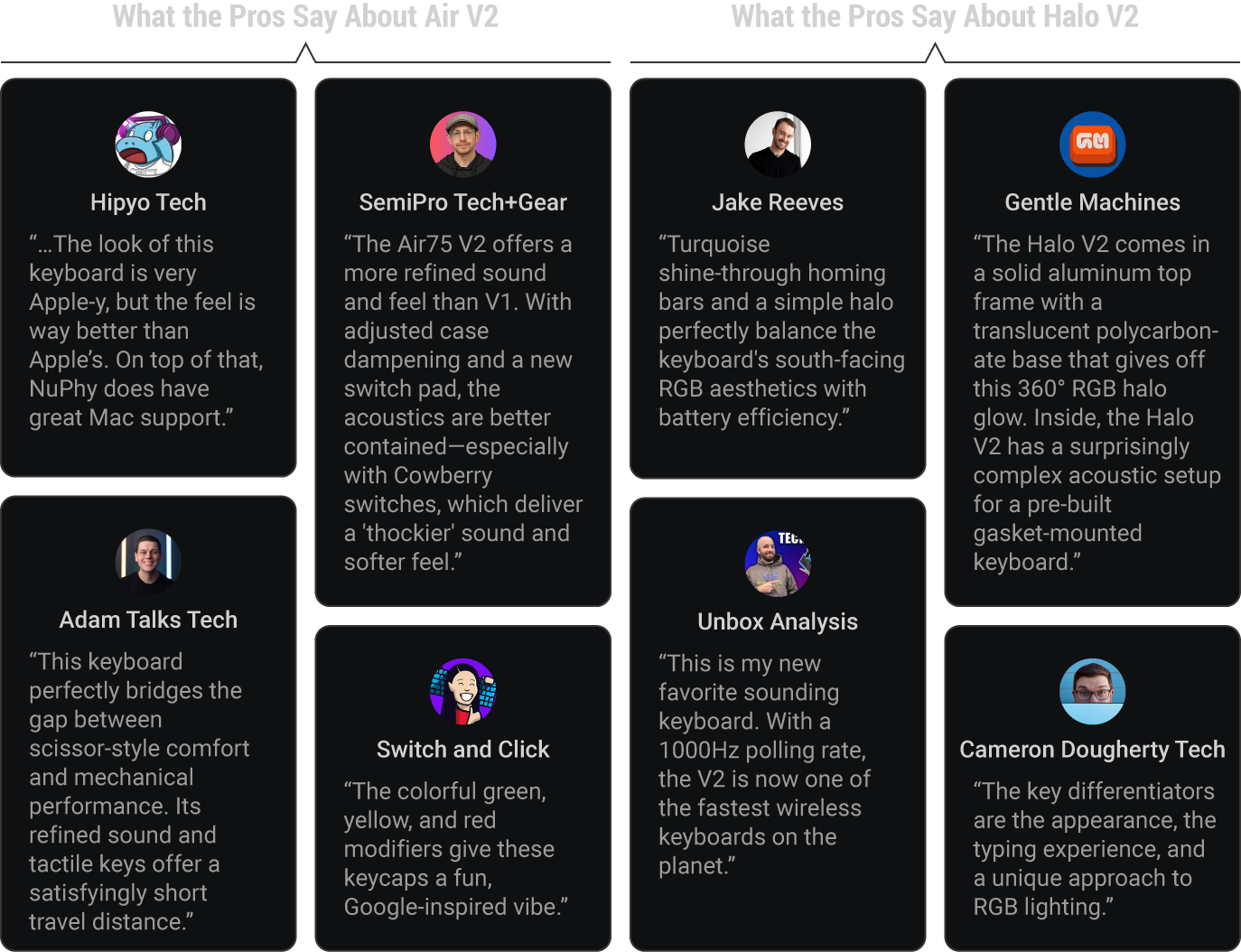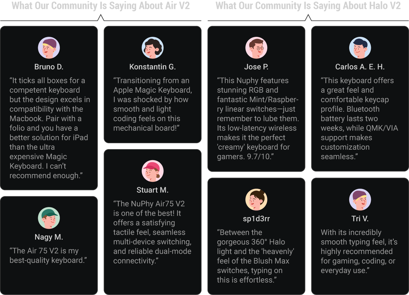 Let’s see what some serious keyboard-obsessed people have to say about the Air and Halo series. 🧑💻🔥💬