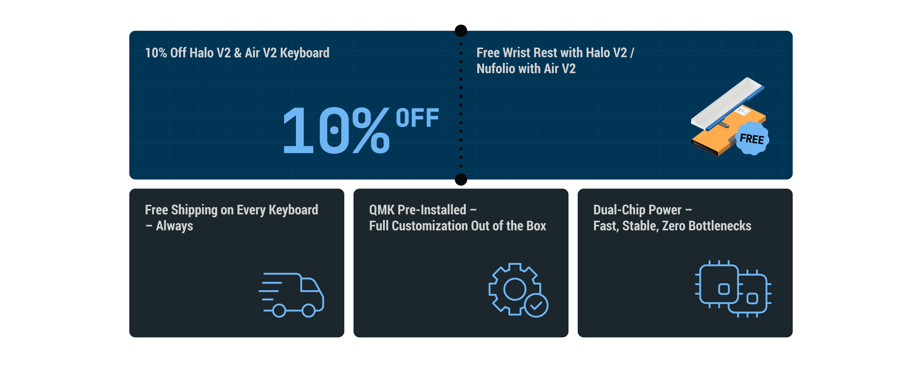 3、Free shipping applies to QMK keyboard purchases during the promotion period.