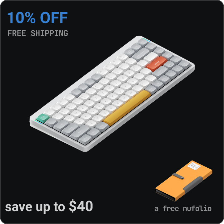 All NuPhy keyboards are supported with a variety of accessories that are continuously upgraded. NuFolio, the most venerable member of NuPhy accessories, has received its V3 update which boasts two magnets for stronger attachment and an optimized stand tilting angle, as well as a new member in the family, the NuPack! Made out of Tyvek paper, NuPack is our next generation keyboard carrying case focused on simplicity and versatility, you can use it as a sleeve bag, or carry it on your back with the complimentary straps. Its splash-resistant design and YKK zipper makes it also ideal for storing & carrying items other than the keyboard. Not to be left out is the Mono Wrist Rest, with two more choices of hardwood, walnut and black-painted white oak, ready to pamper your wrists and eyes with the elegant, poshy hardwood feel.